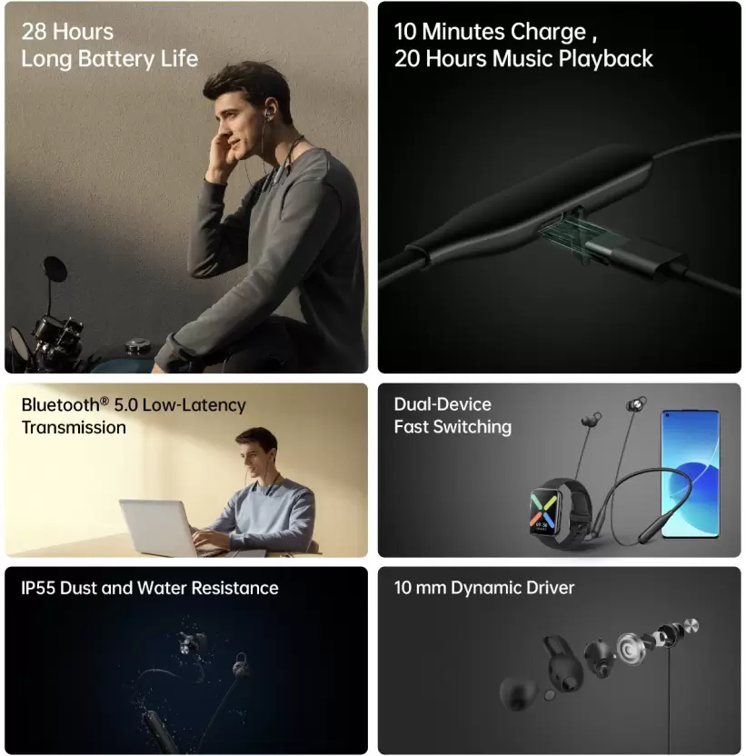 - Super Fast Charge – 10 Minutes Charge -20 Hours Music Playback