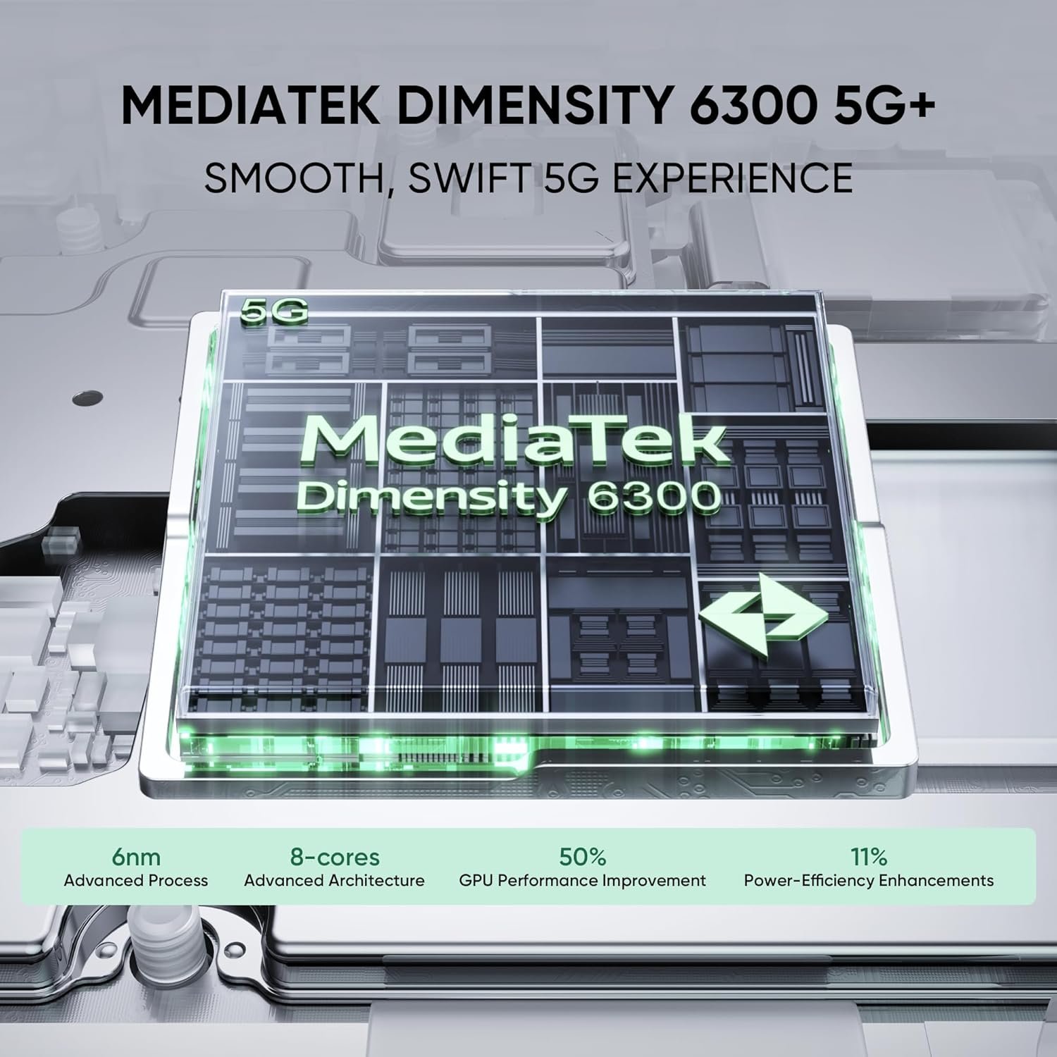 - Rapid Performance: MediaTek Dimensity 6300 processor seamless multitasking, lag-free gaming, and smooth HD streaming, handling all tasks with efficiency.